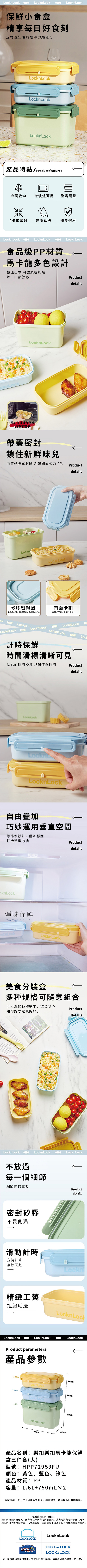 1. 採用食品級PP物料,配以悅目嘅馬卡龍色系設計;2. 卓越密封設計,防滲防漏;特設日期轉盤,輕鬆記錄保鮮期;3. 一套三款實用尺寸,全面滿足日常儲存需要。