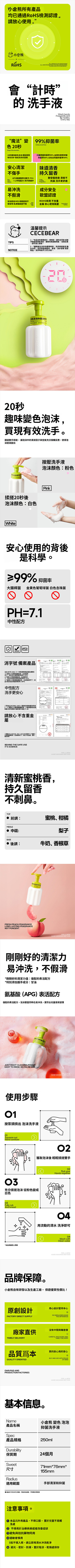 味道清香,持久留香:散發清新蜜桃香味,氣味不刺鼻,潔手體驗更舒適。