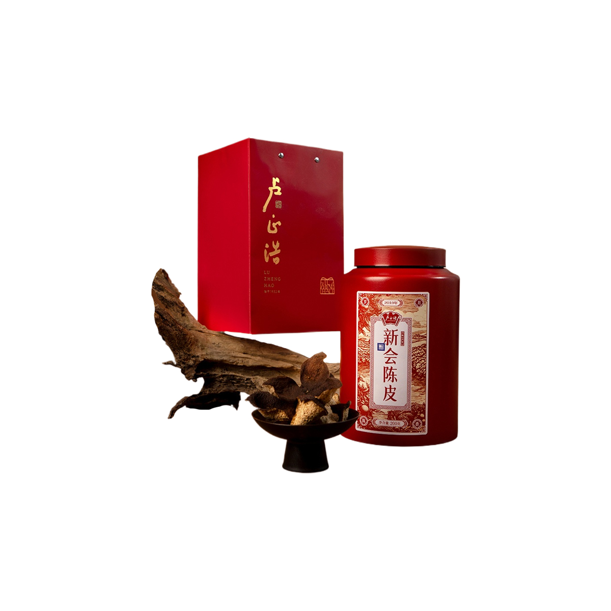 這款陳皮於新會當地乾倉環境下,足期陳化五年,以確保其卓越品質。經過五年陳化,陳皮外皮呈現淺棕色,紋理清晰,帶有明顯的豬鬃紋,油室密集飽滿。外皮紋理凹凸分明,形態自然捲曲;內囊則呈黃白色,有自然的輕微脫落現象。沖泡後,湯色橙黃透亮,口感清涼通透。其香氣融合了陳香與複合木質香調,醇和溫潤,甜度較高,滿口回甘。這份獨特的木質幽香,正是歲月沉澱的印記。