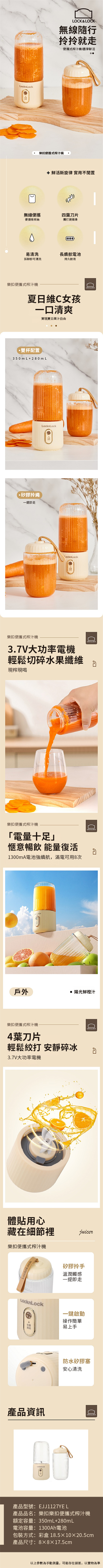 配 350mL 及 280mL 雙杯,輕巧易攜,讓你隨時隨地鮮榨鮮飲。
