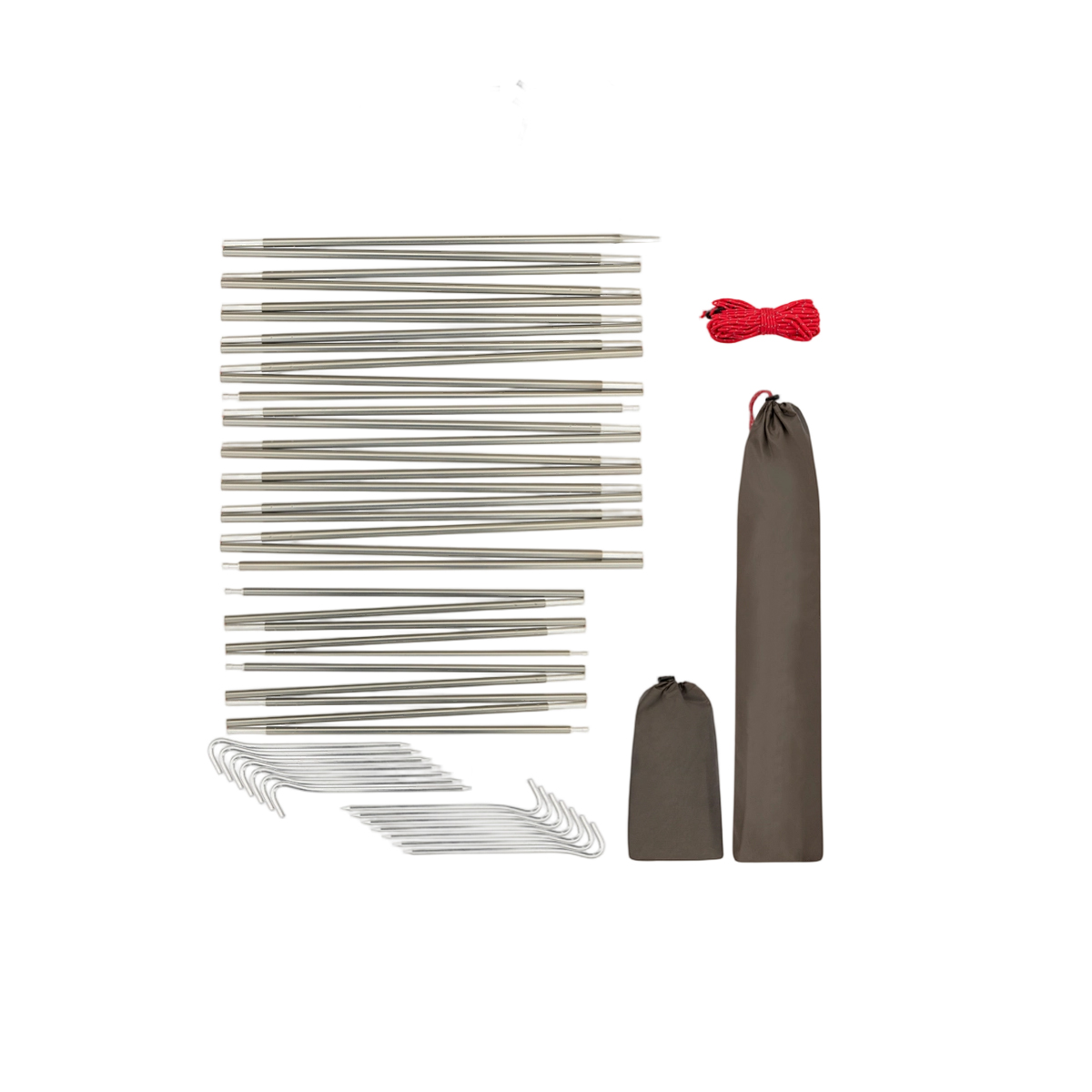 配件:主帳篷1個、帳桿14根、防風繩4根、地釘14個、收納袋1個