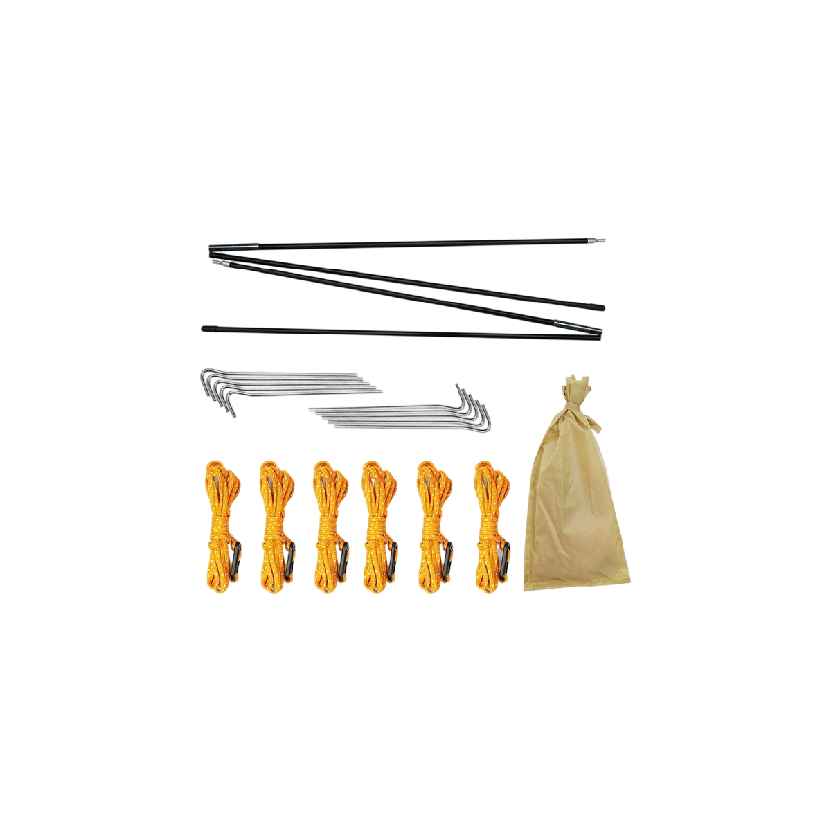 配件:主體帳篷*1、防風繩*6、地釘*10、門廳支撐桿*2、收納袋 *1