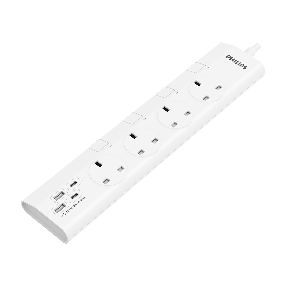 飛利浦 - 3米四位獨立開關附2A2C充電槽電拖板